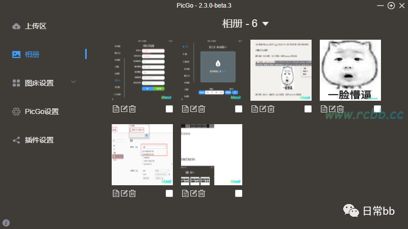 填写完相关信息后,进行测试,发现可以上传就 ok 了,还有个比较好用的功能是,通过 PicGo 上传的,它有个相册可以控制,删除/复制信息/重命名等操作。