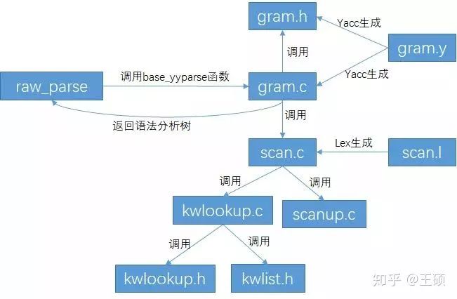 PostgreSQL中语法工作各个文件之间的调用关系: