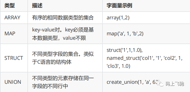 Hive支持关系型数据库的绝大多数基本数据类型,同时也支持4种集合数据类型。