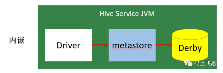 内嵌模式使用的是内嵌的Derby数据库来存储元数据,也不需要额外启动Metastore服务。数据库和Metastore服务都嵌入在主Hive Server进程中。这个是默认的,配置简单,但是一次只能一个客户端连接,适用于用来实验,不适用于生产环境。