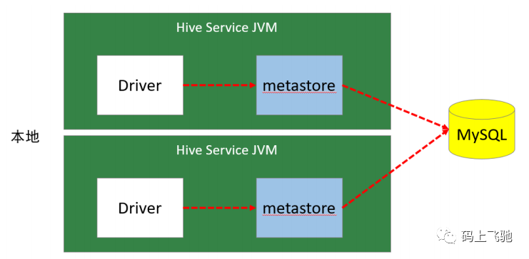 优点:配置较简单,本地模式下hive的配置中指定mysql的相关信息即可。