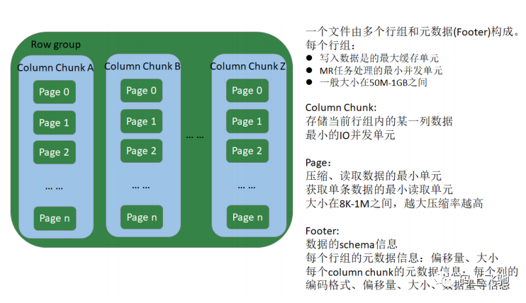 Parquet文件是以二进制方式存储的,不能直接读取的,文件中包括实际数据和元数据,Parquet格式文件是自解析的。