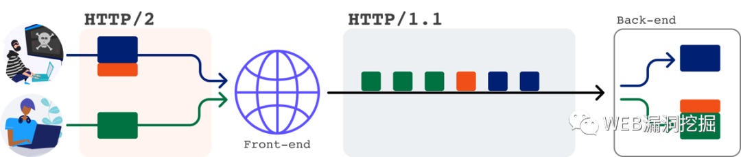 使用HTTP/2的前端几乎总是使用HTTP/2的内置消息长度。然而,接收降级请求的后端不能访问此长度数据,所以必须使用CL或TE头。这导致了两种主要类型的漏洞: H2.TE和H2.CL。