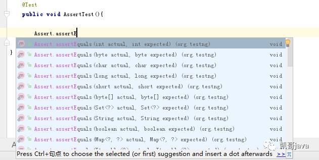 TestNG中提供了多个33个assertEquals()方法,主要是匹配不同的数据类型和集合类操作。我们最常用的就是assertEquals(actual, expected)或者assertEquals(actual, expected,“message1”)