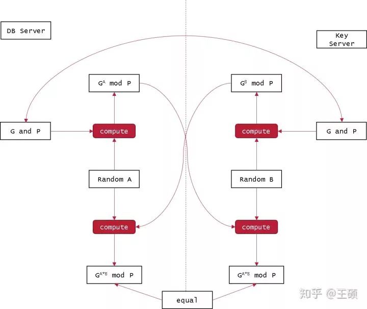 D使用K发过来的数B', 计算B’mod P,这就是数据加密密钥;