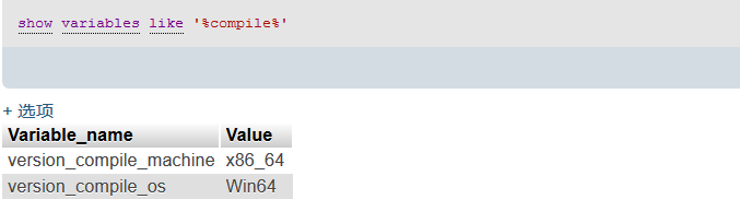 查询操作系统版本showvariables like '%compile%';