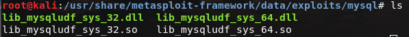 2、根据操作系统版本选择插件,当前服务器为64位操作系统版本,故可在kali中/usr/share/metasploit-framework/data/exploits/mysql导出64位的udf.dll到本地