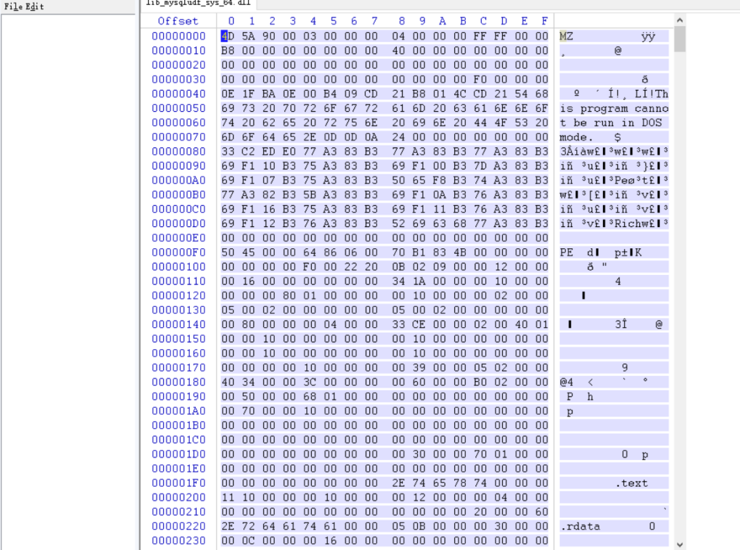 4、使用winhex获取udf.dll的16进制文本