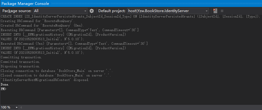 PM> Update-Database -Verbose -Context BookStoreHttpApiHostMigrationsDbContext