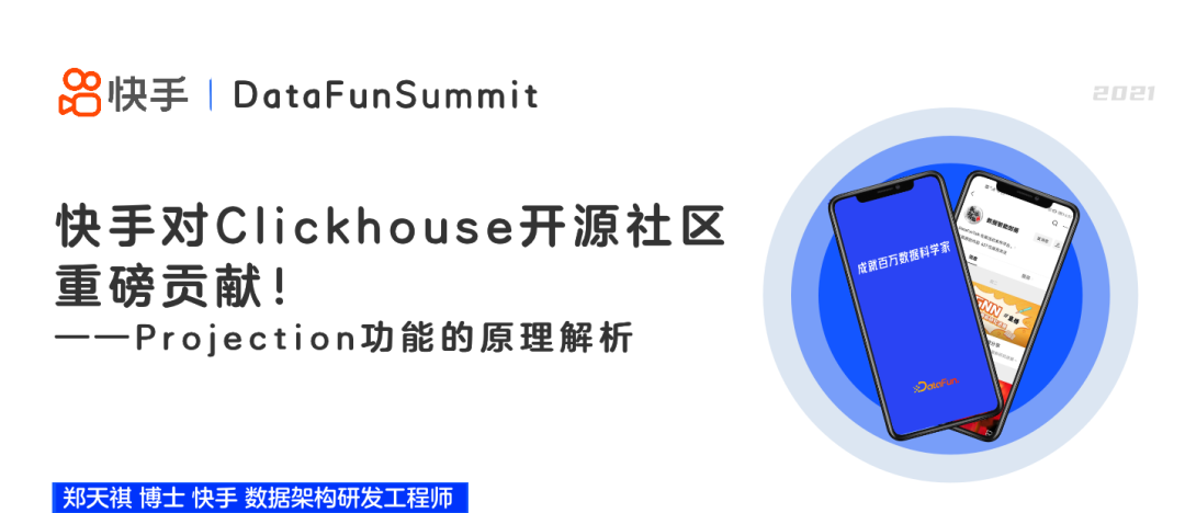 大家下午好,今天我给大家介绍一下快手对ClickHouse开源社区最新贡献的功能——Projection。首先自我介绍一下,我是去年加入快手的,也是中科院计算所系统结构博士,ClickHouse Community Member。ClickHouse从开源以来,大概半年后,我就是里面活跃的贡献者,目前已经贡献了300多个PR。今天我的分享分为四个部分:① ClickHouse背景介绍;② Projection简介与用例;③ Projection原理与实现;④ 特性对比与生产应用效果。