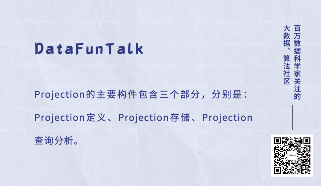Projection的主要构件包含三个部分,分别是:Projection定义、Projection存储、Projection查询分析。
