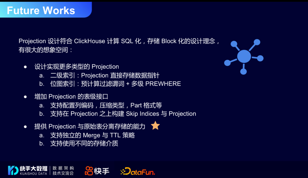 这就是我们把Projection从弱做到强,进一步提升ClickHouse在OLAP领域的应用强度。这个强是有多方面的,还有一方面就是Projection的想象空间比较大。