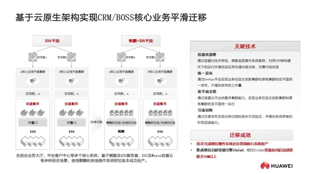 基于云原生架构实现CRM/BOSS核心业务平滑迁移;基于鲲鹏及X86服务器、K8S及Mesos容器云等多种组合场景,使用麒麟和统信操作系统欧拉版本成功投产。而迁移的成效十分显著——不仅首次完成欧拉操作系统在运营商核心系统投产,也实现了集成欧拉自研容器引擎iSulad,相比Docker容器应用启动速度提升50%以上。中科创达的边缘计算方案