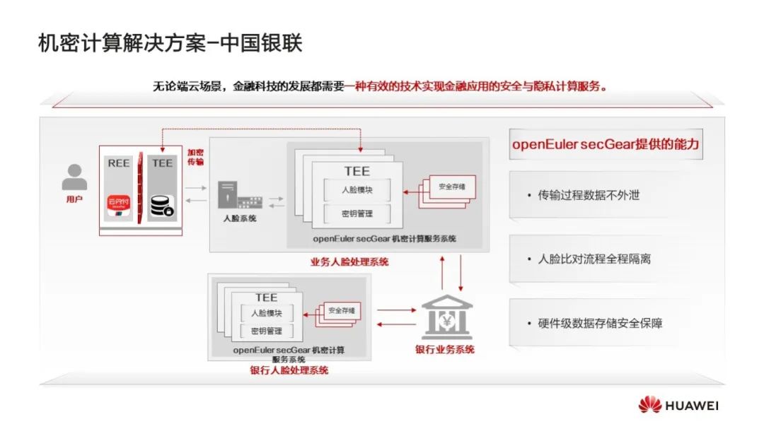 中国银联借助欧拉secGear提供的能力,实现传输过程数据不外泄,人脸比对流程全程隔离,硬件级数据存储安全保障,从而构建一种有效的技术实现金融应用的安全与隐私计算服务。辅助商户经营决策,并依托,辅助商户开展精准营销,实现精细化运营。如今,欧拉已进入规模化应用阶段。在助力产业数字化转型方面,发挥着自己的强大作用。截止目前,欧拉开源社区已有超过百家企业加入,千个城市下载,万级社区开发者,成为了中国最具活力的开源社区,获得了产业界的积极响应,多样性算力的生态体系已经成熟构建。未来,欧拉和伙伴们仍将在计算生态上,为产业、企业数字化转型铺设平坦大道,将持续深耕数字化,助力小伙伴实现数字转型,共筑数字技术新生态。