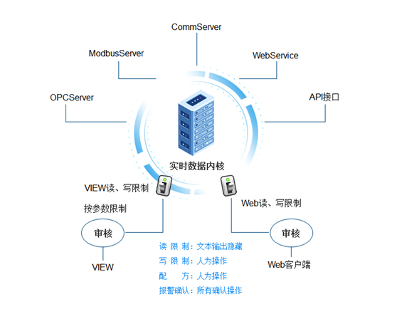 点的外部访问限制:点的安全区除了对客户端访问限制外,还能限制外部程序的访问,如通过OPC服务,Modbus服务CommServer(TCP协议),API接口,WebService等的访问。是否限制也可以在安全设置中指定,如下图红色框所示。