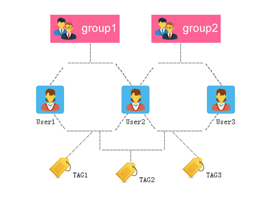 图中有三个用户,group1包括user1,user2。group2包括user2,user3。