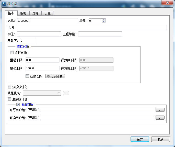 点的安全属性包括读、写访问限制,具有报警功能的点还具有报警确认操作限制。