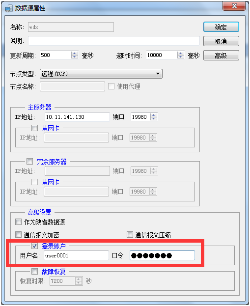 登录服务器:登录服务器是指用于整个系统用户验证的服务器。若不指定登录服务器(适合于单机版)则每个进程(如DB、VIEW等)使用自身的用户信息。在安全设置中指定登录服务器。指定登录服务器后,系统中每个进程都使用相同的用户与用户组信息。当信息(包括用户和用户组)改变时每个进程会自动进行用户信息同步。在分布式配置中必须指定统一的登录服务器以保证用户信息一致。