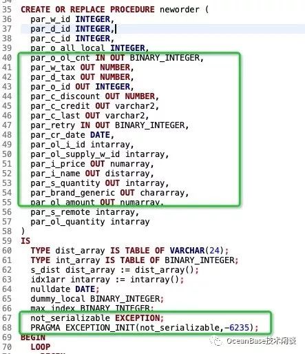 OceanBase从2.0版本就开始支持自定义函数、存储过程和匿名块了。对ORACLE存储过程兼容的能力是逐步完善的。此次TPC-C