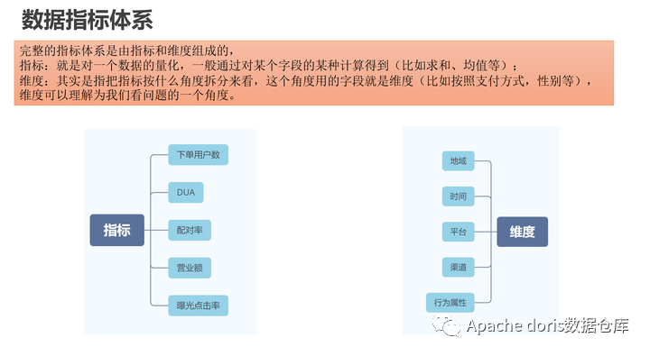 体系是由不同的维度组成,而维度是指用户观察、思考与表述某事物的“思维角度”,维度是指标体系的核心,没有维度,单纯说指标是没有任何意义的。