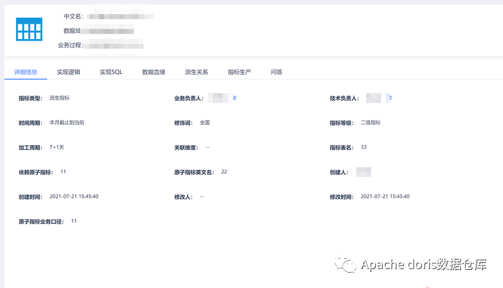 技术信息对应指标的物理模型信息,由数据研发进行维护,主要包括对应物理表及字段信息;
