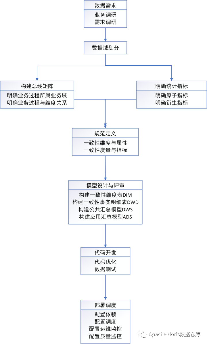 根据对业务需求、各个模块的业务流程进行分析,进行数据域的划分。数据域划分按照业务过程或者业务板块的功能模块划分。依据实际业务过程进行归纳、抽象得出数据域。