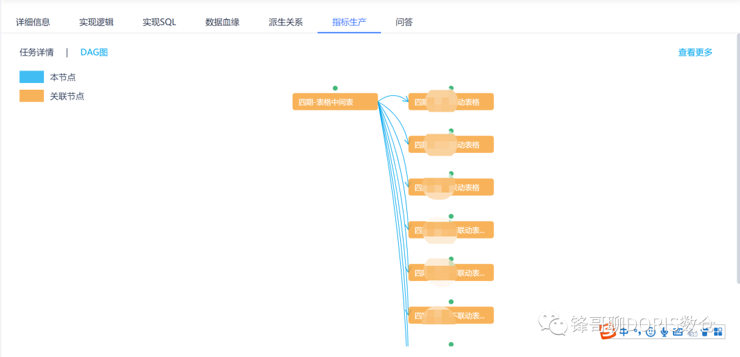 我们深度集成了海豚调度,这里的信息是从海豚调度系统(DolphinScheduler)获取的任务DAG依赖,点击查看更多,可以跳转到内置的海豚调度页面进行查看更详细的信息,