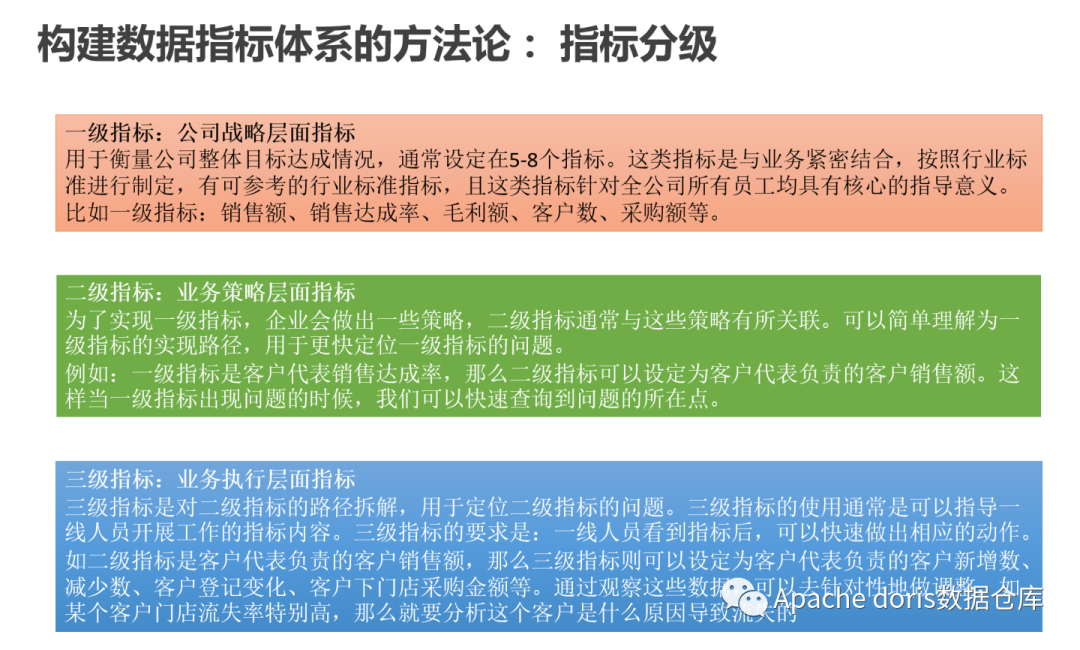 指标分级管理可以帮助我们更高效的去定位问题,去验证你的方法论,无需每次都要思考要去看哪些指标。