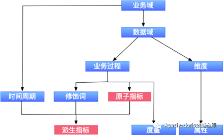 派生指标:派生指标=一个原子指标+多个修饰词(可选)+时间周期。可以理解为对原子指标业务统计范围的圈定。如原子指标:支付金额,最近一天海外买家支付金额则为派生指标(最近1天为时间周期,海外为修饰词,买家作为维度,而不作为修饰词)