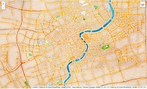 当然我们也可以设置地图的纹理样式,上述中的代码,地图的纹理样式默认的是“OpenStreetMap”,在这基础之上,我们也可以将其他几种纹理样式给添加上去,如“Stamen Terrain”样式、“Stamen Toner”样式以及“Mapbox Bright”样式等等,代码如下