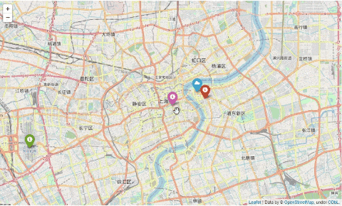 shanghai = folium.Map(location=[31.2304, 121.4737], tiles='openstreetmap',zoom_start=12)folium.Marker([31.2397, 121.4998], popup = '<i>东方明珠塔</i>',icon=folium.Icon(icon="cloud"),).add_to(shanghai)folium.Marker([31.2343, 121.5079], popup = '<i>上海环球金融中心</i>',icon=folium.Icon(color="red", icon="info-sign"),).add_to(shanghai)folium.Marker([31.1922, 121.3343], popup = '<i>上海虹桥机场</i>',icon=folium.Icon(color="green"),).add_to(shanghai)folium.Marker([31.2283, 121.4755], popup = '<i>上海博物馆</i>',icon=folium.Icon(color="purple"),).add_to(shanghai)shanghai