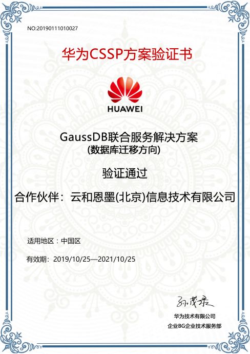 华为CSSP(认证服务解决方案伙伴)是CSP(认证服务合作伙伴)的升级模式,服务解决方案伙伴基于与华为的服务能力互补和项目实践,通过双方技术专家及实验室验证,实现场景化联合服务方案的构建、发布、复制。这就要求合作伙伴既能提供产品和系统服务,更要具备云计算、大数据、数据库的服务能力,可以面向所有的企业客户,更好的提供产品解决方案与服务等。GaussDB是华为自研的全球首款同时支持x86和Kunpeng硬件架构的AI-Native分布式数据库。凭借其创新的内核、领先的技术,为用户提供更高性能、更高可用、更高扩展能力的数据库服务。华为GaussDB数据库,已经广泛应用于金融,政府、电信等行业,并已经进入核心系统,满足客户对智能时代高并发事务实时处理,海量数据高效分析的需求。到目前,华为GaussDB系列数据库产品全球累计发货超过30000套。云和恩墨作为全球化数据资产端到端解决方案服务商,在数据库领域具备领先的支持和服务能力,对于金融、电信、保险、交通、能源、制造业等不同行业场景的数据库应用理解深刻。基于云和恩墨和华为在数据库领域的共同理解和不懈投入,经过对于GaussDB的深入研究和实践探索,云和恩墨成为国内首家华为GaussDB CSSP认证合作伙伴。本次CSSP认证,意味着云和恩墨将为GaussDB数据库迁移服务提供解决方案,与华为原厂服务形成互补,为客户使用GaussDB提供更加完善的服务解决方案。智能时代,在数据变革的大趋势下,华为与云和恩墨强强联合,密切合作,充分发挥华为GaussDB数据库的创新产品能力,和云和恩墨多年来在数据技术服务、产品上的深度积累,共同为企业核心应用提供完善、安全、高效、经济的解决方案。