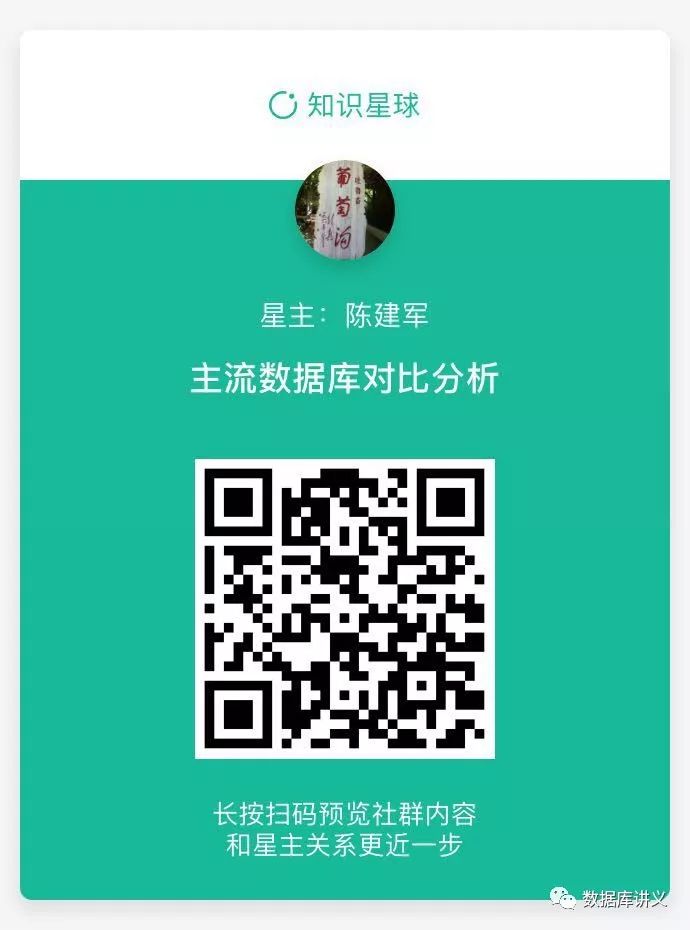 扫描下方二维码,移步知识星球,学习更多数据库知识:
