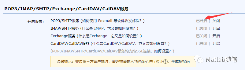 % 1.进度提醒f = waitbar(0,'1','Name','进度');set(f,'color','w');num=100;for k=1:numpause(0.1)waitbar(k/num,f,sprintf('%s',['已完成:',num2str(round(100*k/num)),'%']));end% 2.邮件提醒mysendemail% 3.语音提醒tx%% 函数function tx()[y, Fs]=audioread('music.mp3');ticwhile 1sound(y,Fs);pause(4);t=toc;if t>30 %播放30sbreak;endendendfunction mysendemail()%% 1.基础配置% 账号设置mail = '1292584987@qq.com'; % 邮箱地址password = 'abcdefg'; % 授权码% 需要在qq邮箱开启,具体操作请看下文% 服务器设置setpref('Internet','E_mail',mail);setpref('Internet','SMTP_Server','smtp.qq.com');% 选择qq邮箱setpref('Internet','SMTP_Username',mail);setpref('Internet','SMTP_Password',password);props = java.lang.System.getProperties;props.setProperty('mail.smtp.auth','true');props.setProperty('mail.smtp.socketFactory.class', 'javax.net.ssl.SSLSocketFactory');props.setProperty('mail.smtp.socketFactory.port','465');%% 2.设置邮件内容% 收件人receiver='2651056890@qq.com';% 邮件标题title='Matlab程序进度';% 邮件内容content='运行完成!';% 发送邮件sendmail(receiver,title,content);end