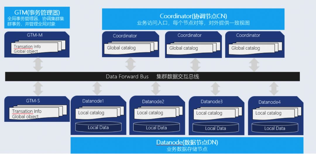 GTM: 全局事务管理器(Global transaction manager.),负责管理集群事务信息,同时管理集群的全局对象,比如序列,除此之外GTM上不提供其他的功能。
