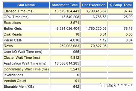 然后我们把SQL的AWR报告导出来一看,我们可以看到平均每次要处理7w多条记录,和6相比差别很大。这说明数据存在严重的倾斜。