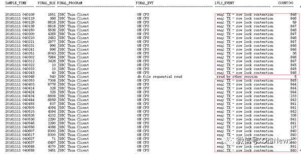 当用户在投诉数据库严重的行锁问题的时候,我们首先会想到,在发生TX行锁时,由于资源久久得不到释放,系统中会话积压,导致DBtime会变得很高。