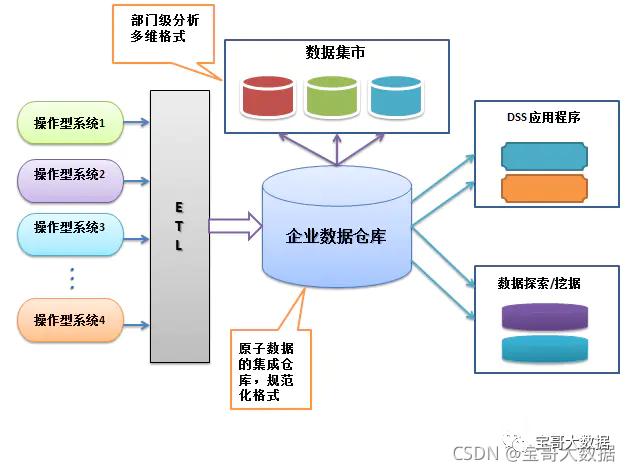 一,都是假设操作型系统和分析型系统是分离的; 二,数据源(操作型系统)都是众多; 三,ETL 整合了多种操作型系统的信息,集中到一个企业数据仓库。