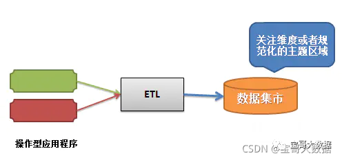 数据集市,是针对不同的主题区域,从企业数据仓库中获取的信息,转换成多维格式,然后通过不同手段的聚集、计算,最后提供最终用户分析使用,因此Inmon 把信息从企业数据仓库移动到数据集市的过程描述为“数据交付”。