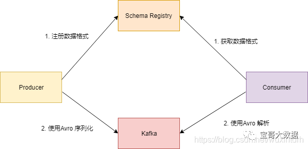 我们遵循通用的结构模式并使用"schema注册表"来达到目的。"schema注册表"的原理如下:
