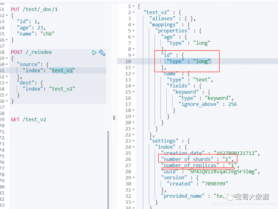 更新副本数和刷新时间,自此数据迁移就完成了,因为之前的索引不用,但是接口都是指向之前的索引,我们就在新索引添加别名即可。
