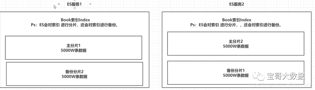 索引 Index ES会对索引分片, 还会对索引进行备份(副本)备份分片默认不会帮助检索数据,当ES检索压力特别大的时候,备份分片才会帮忙检索数据