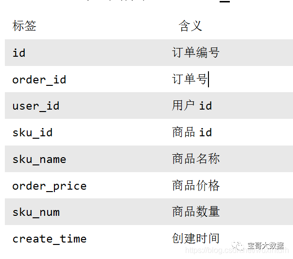 订单详情表记录user_id,商品sku_id ,具体的商品信息(商品名称sku_name,价格order_price,数量sku_num)