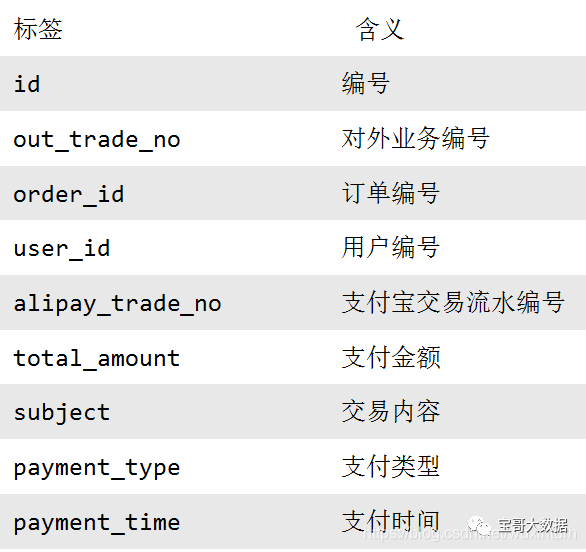 `out_trade_no` string COMMENT '支付流水号',