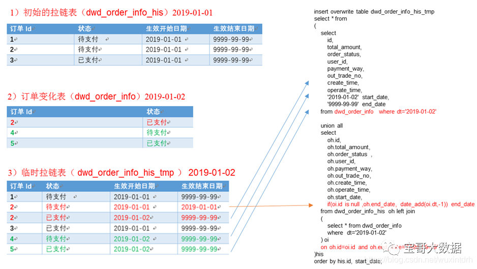 的全部数据(2)更新旧的拉链表左关联订单变化表