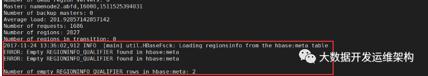 #上面的图发现region有空的row,所以我们需要进行修复一下:[hbase@master98 ~]$ hbase hbck -fixEmptyMetaCells