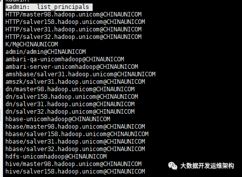 getprinc zookeeper/salver32.hadoop.unicom@CHINAUNICOM