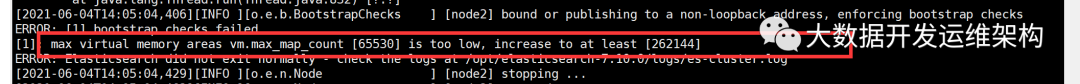 4.es启动最小需要的内存数是262144,如不修改会报错,如下: