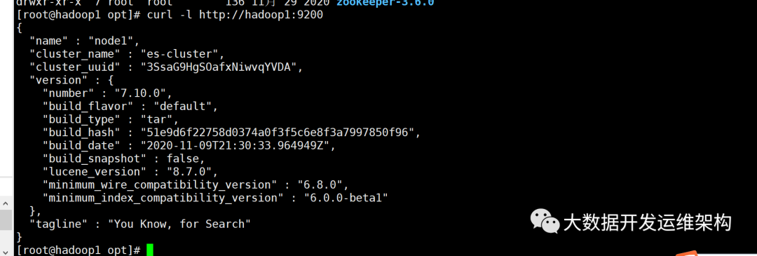 5.解压tar包,将elasticsearch-7.10.0-linux-x86_64.tar.gz上传到hadoop1节点,解压到/opt下,命令如下: